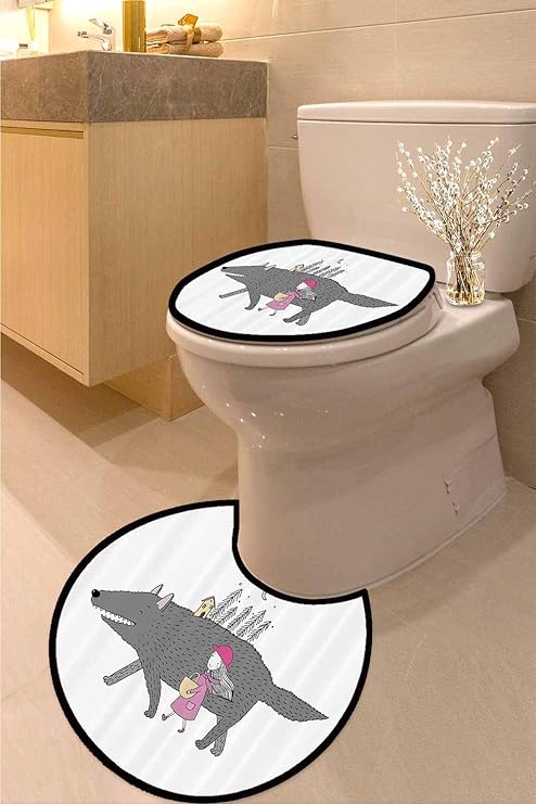 Amazon Com 2 Pcs Bathroom Mats Set Girl With A Giant Wolf Lid