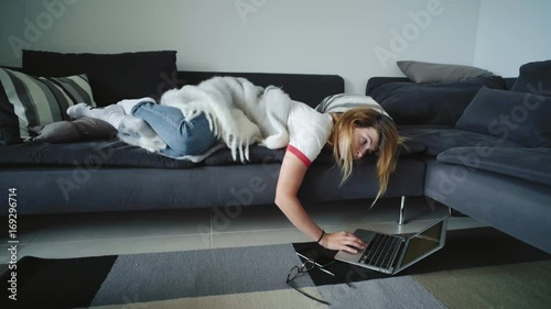 Blonde Girl Cute Talks On Chat Browses Or Surfs Internet Does