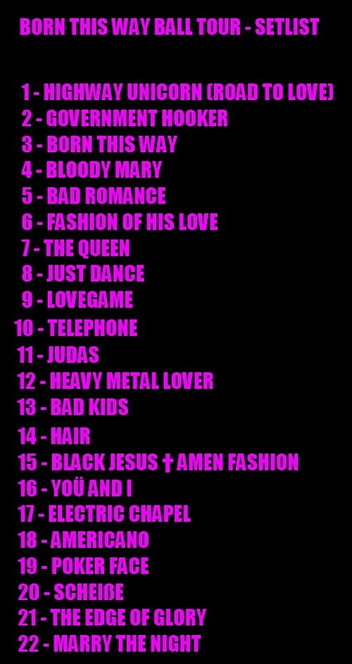 Born This Way Ball Setlist Tumblr