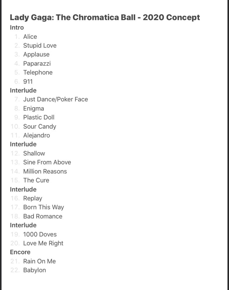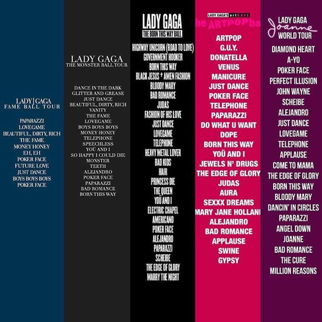 Giuseppe Anthony On Twitter Setlists For Lady Gaga S Tours